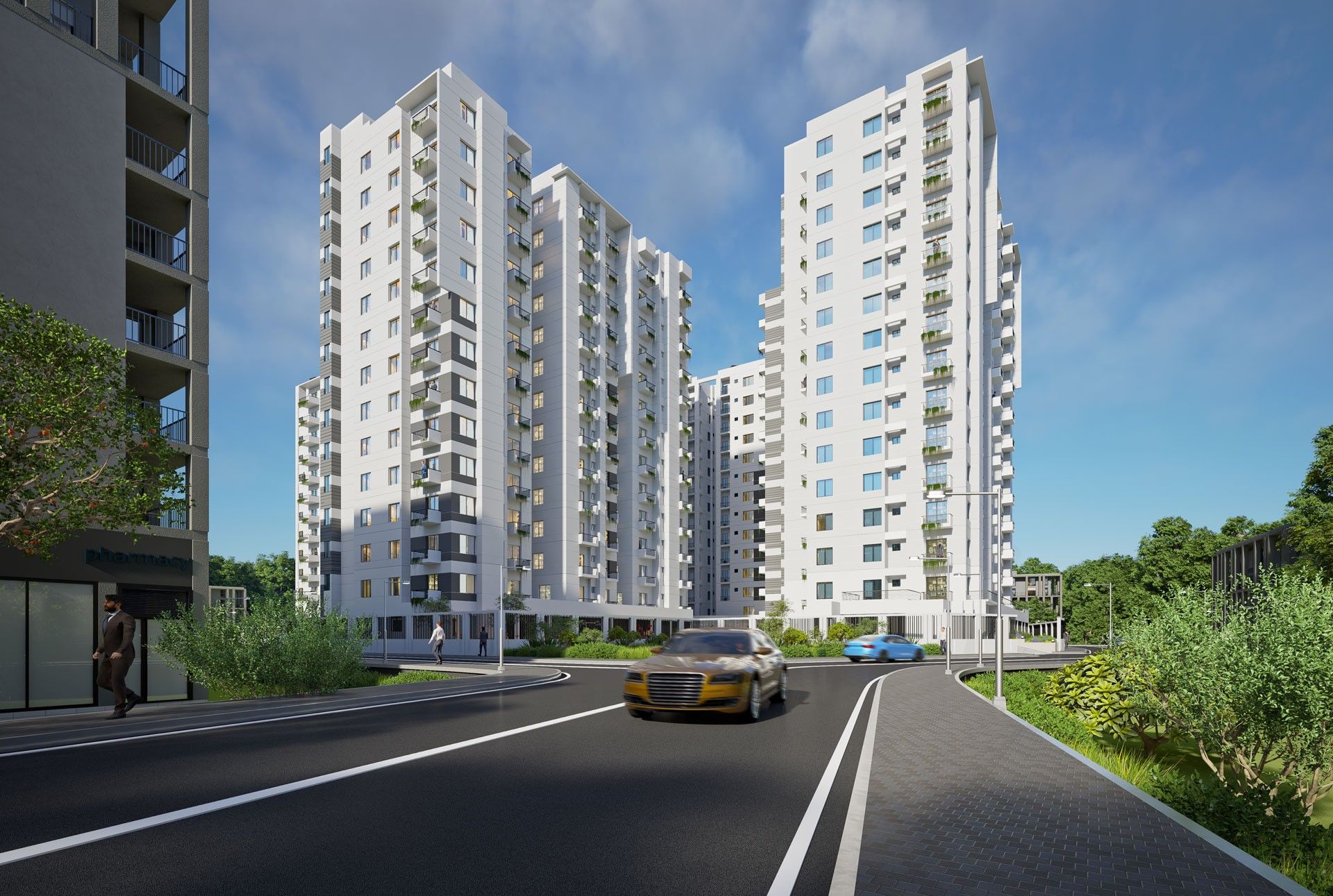 Swimming pool, gym, basketball court, jogging track, and children’s play area. 24/7 security, CCTV, parking, power backup, and community facilities.